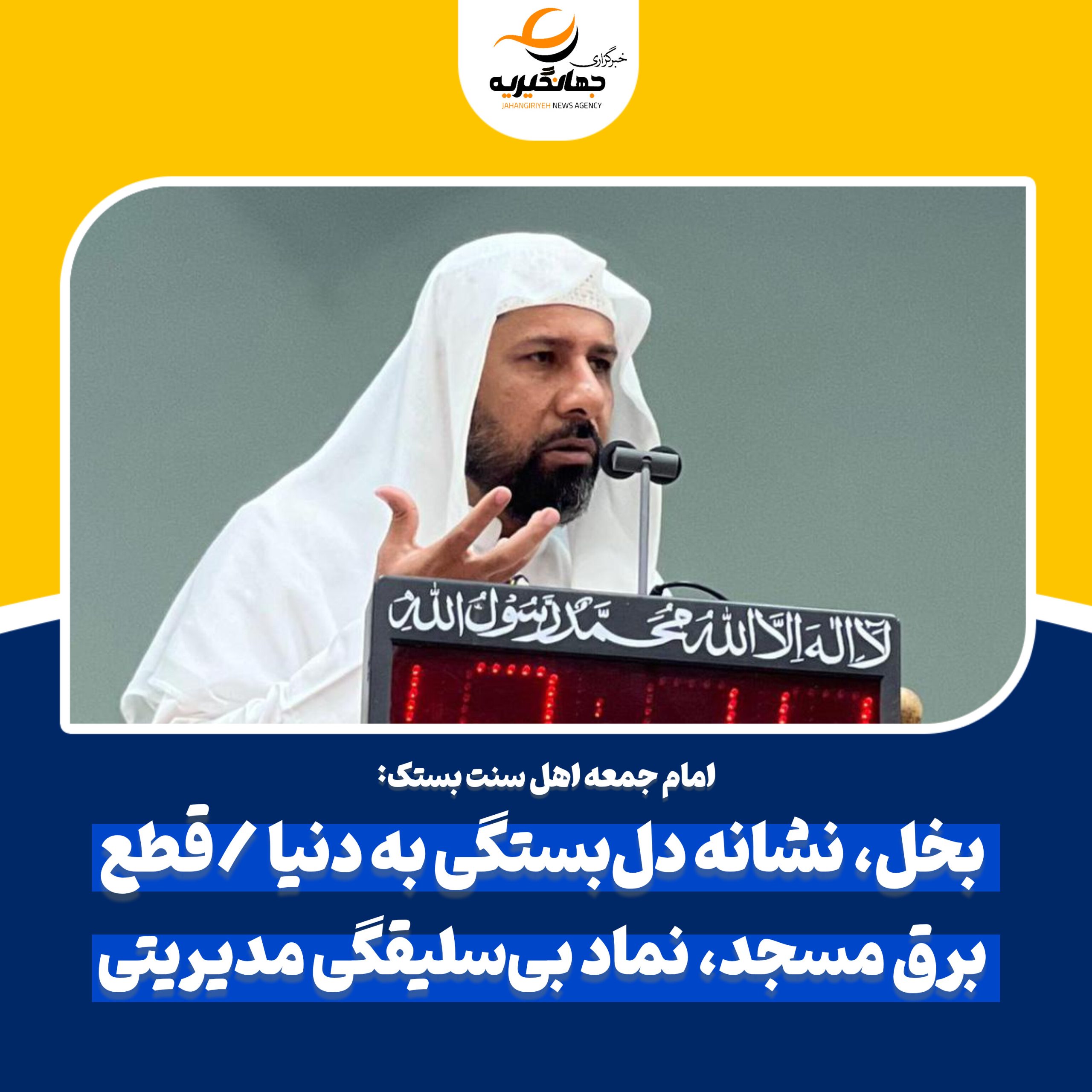 به گزارش پایگاه خبری تحلیلی جهانگیریه؛سید سلیمان حسینی، امام جمعه اهل سنت شهر بستک، در خطبههای نماز جمعه این هفته، به موضوع «بُخل» بهعنوان یکی از صفات ناپسند انسانی پرداخت و آن را عامل نابودی بسیاری از امتهای گذشته دانست. وی با استناد به آیه ۱۸۰ سوره آلعمران تأکید کرد: «افرادی که در برابر نعماتی که خداوند به آنها عطا کرده بخل میورزند، گمان نکنند که این رفتار به سودشان است؛ بلکه در روز قیامت، همین بخل دامانشان را خواهد گرفت.»