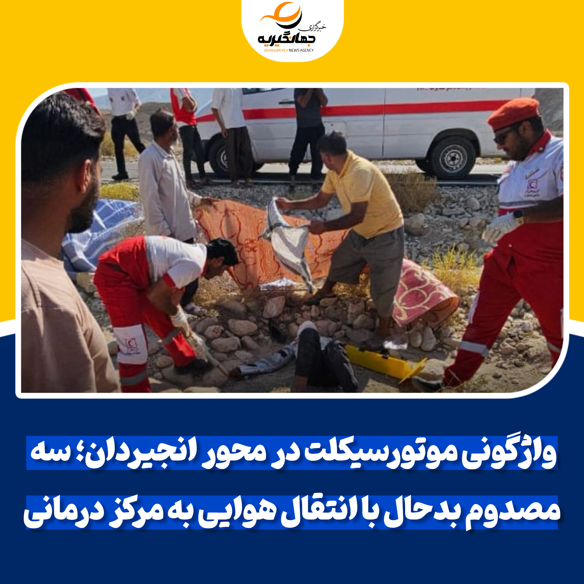 واژگونی موتورسیکلت در محور انجیردان؛ سه مصدوم بدحال با انتقال هوایی به مرکز درمانی