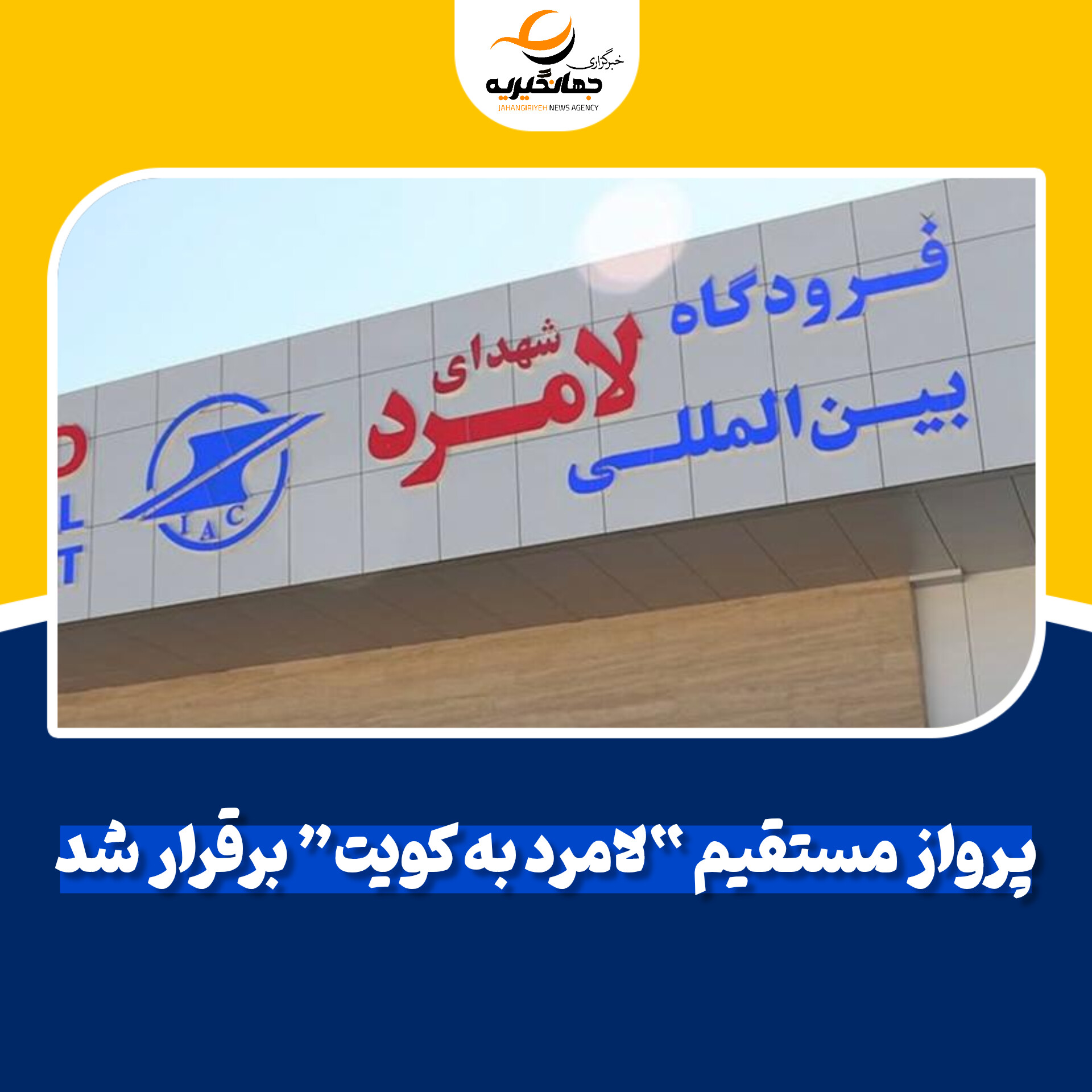 به گزارش پايگاه خبری تحلیلی جهانگیریه، سفارت ایران در کویت اعلام کرد: از سه‌شنبه هفته جاری، پرواز مستقیم از مبدأ «لامرد» به مقصد کویت انجام خواهد شد.